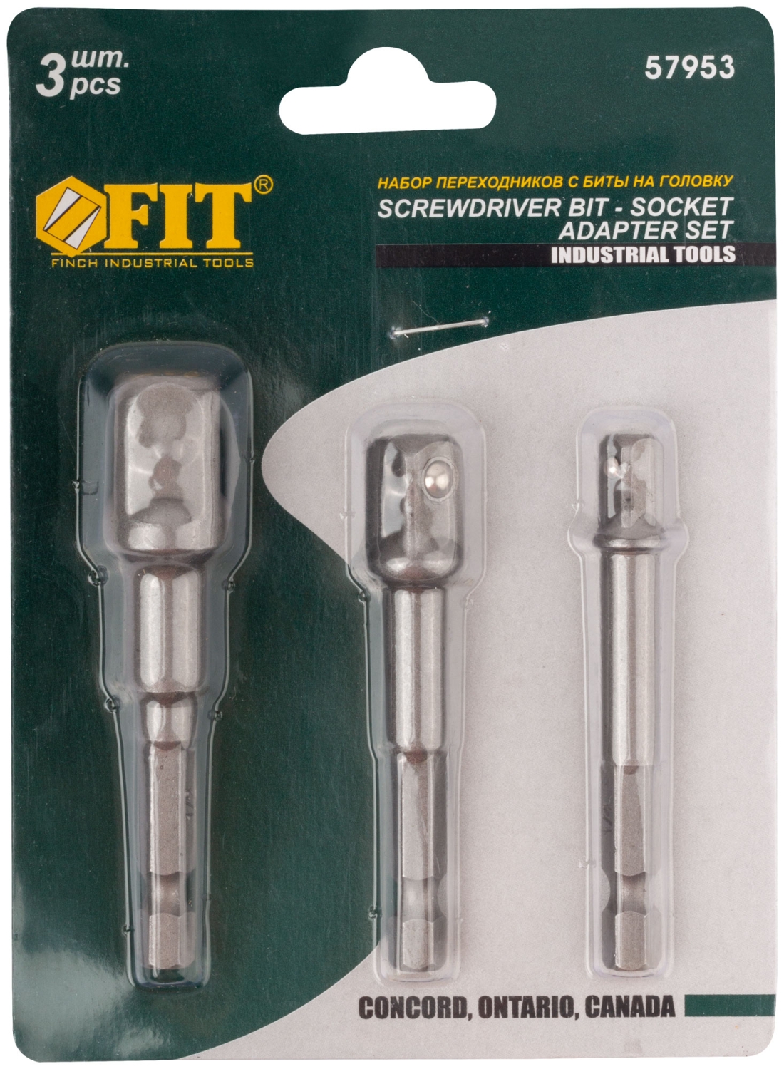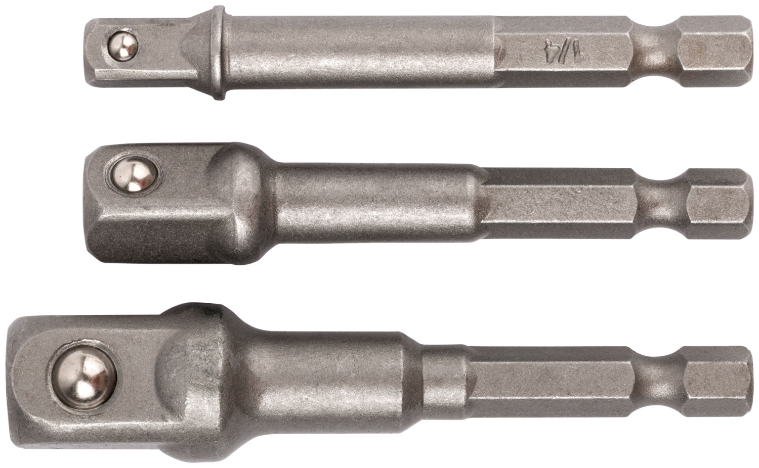 Под головки с хвостовика под биты. В наборе: 3 адаптера (1/4", 3/8", 1/2"). Материал: легированная сталь. Упаковка: блистер.