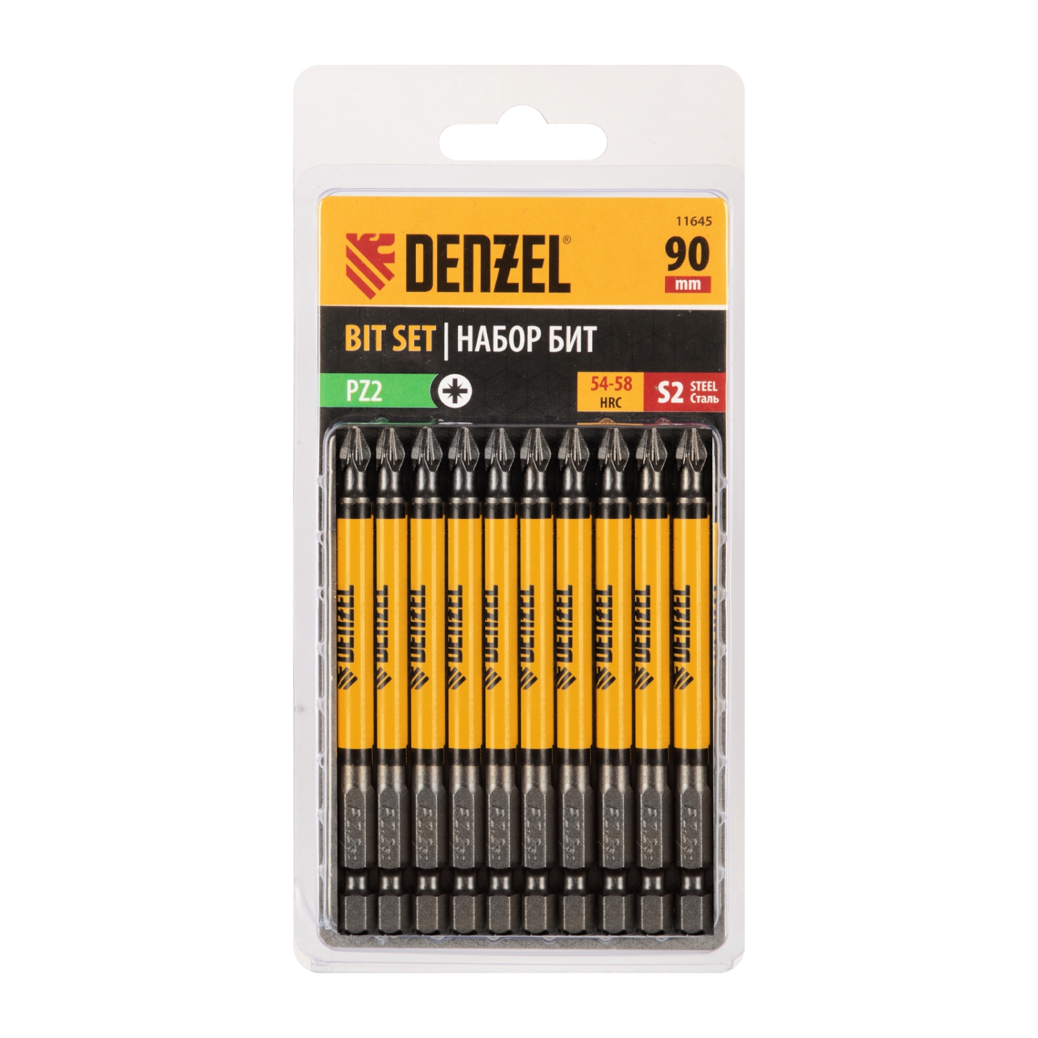 Набор односторонних бит PZ x 90 мм Denzel 11645 включает в себя 10 сменных насадок из стали S2 с крестообразными шлицами Pozidriv и шестигранными хвостовиками 1/4". Профессиональная оснастка рассчитана на работу с шуруповертом, обеспечивает быстрый монтаж и демонтаж резьбовых соединений с углублением PZ2. Устойчивое сцепление с крепежом благодаря дополнительным ребрам на шлице Позидрайв позволяет увеличить крутящий момент и снизить риск соскакивания биты. олговечность — насечки на шлице препятствуют проскальзыванию и «слизыванию» бит, дополнительно усиливают контроль при работе с саморезами по дереву.