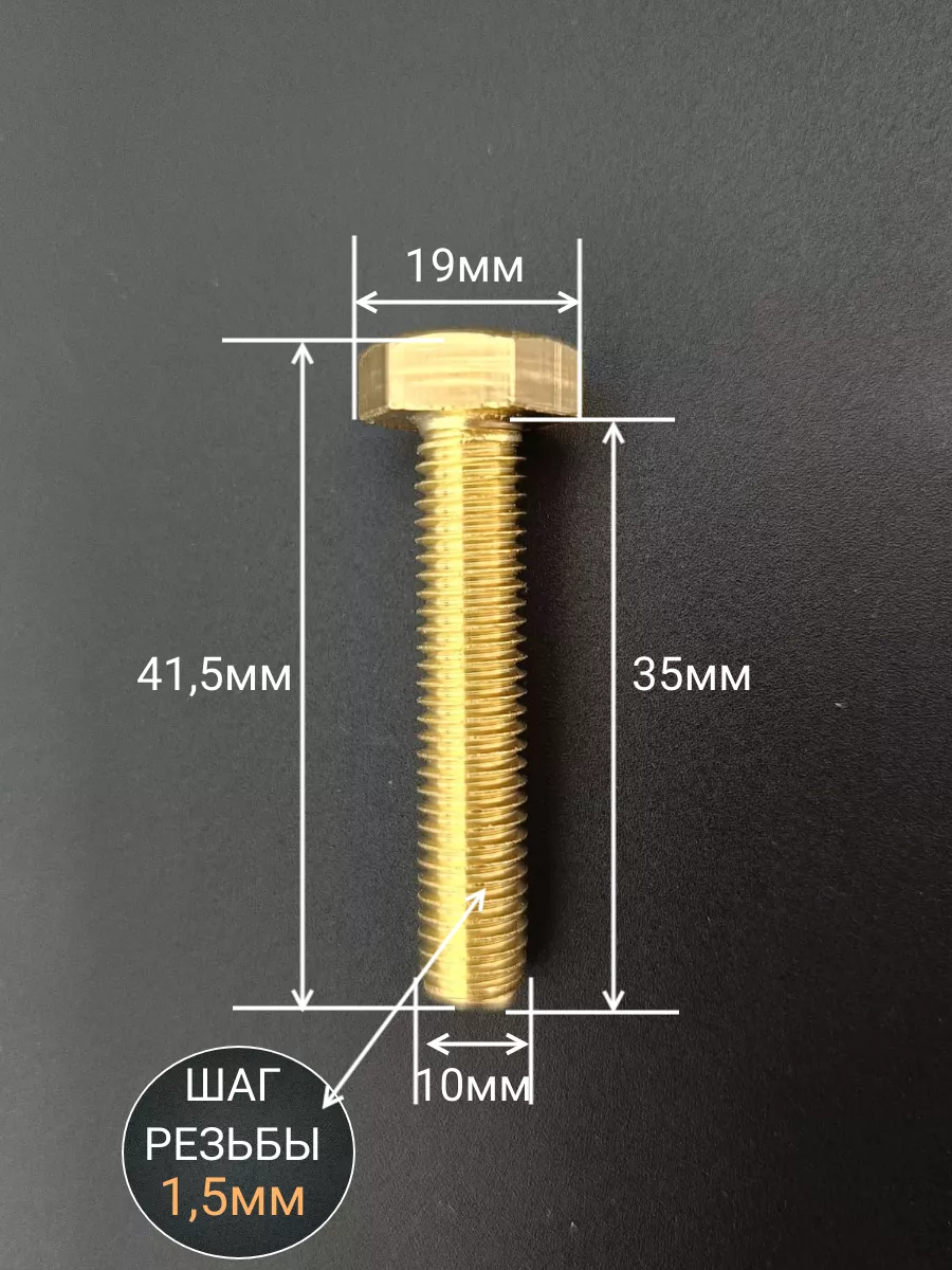Болт латунный М10х35 DIN933,10 шт