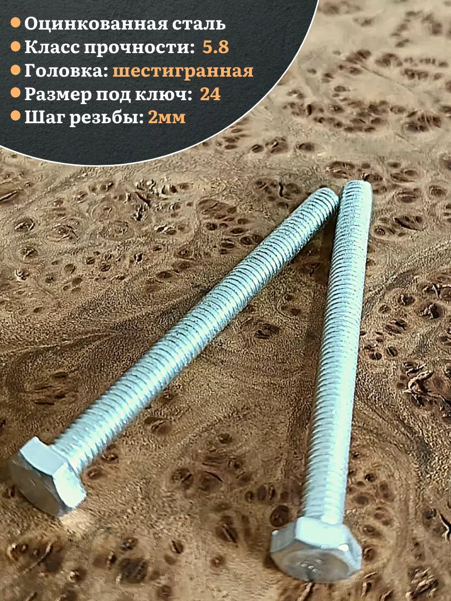 Имеет шпильку с полной резьбой и шестигранную голову. Длина болта определяется по длине шпильке. Стандартный класс прочности для болтов от 4,8 до 5,8. Самый распространенный вид болтов применяется совместно с гайками и шайбами.
