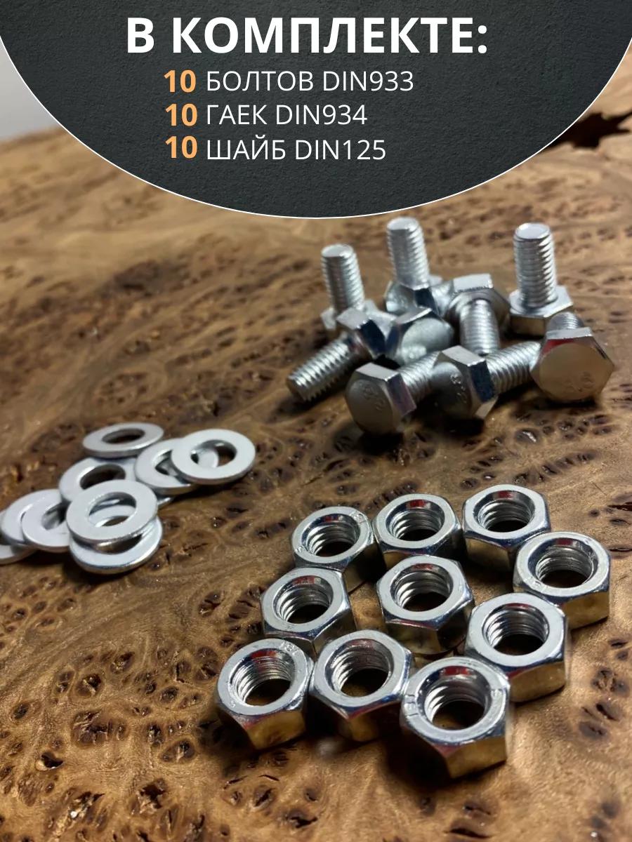 Болт 8х16 мм с гайкой и шайбой ОЦ DIN933 к.п.8.8 (10 шт.)
