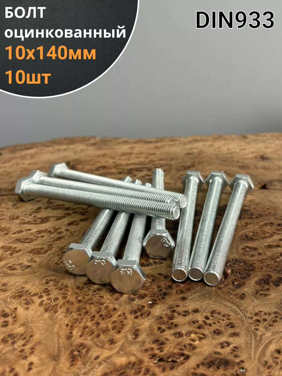 Болт оцинкованный М10х140 DIN933 10 шт.