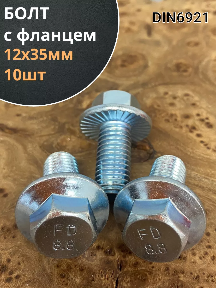 Болт М12х35 с фланцем к.п.8.8 ОЦ DIN6921, (10 шт.)