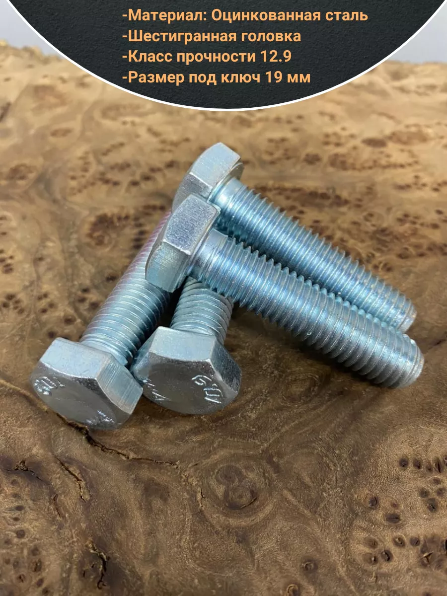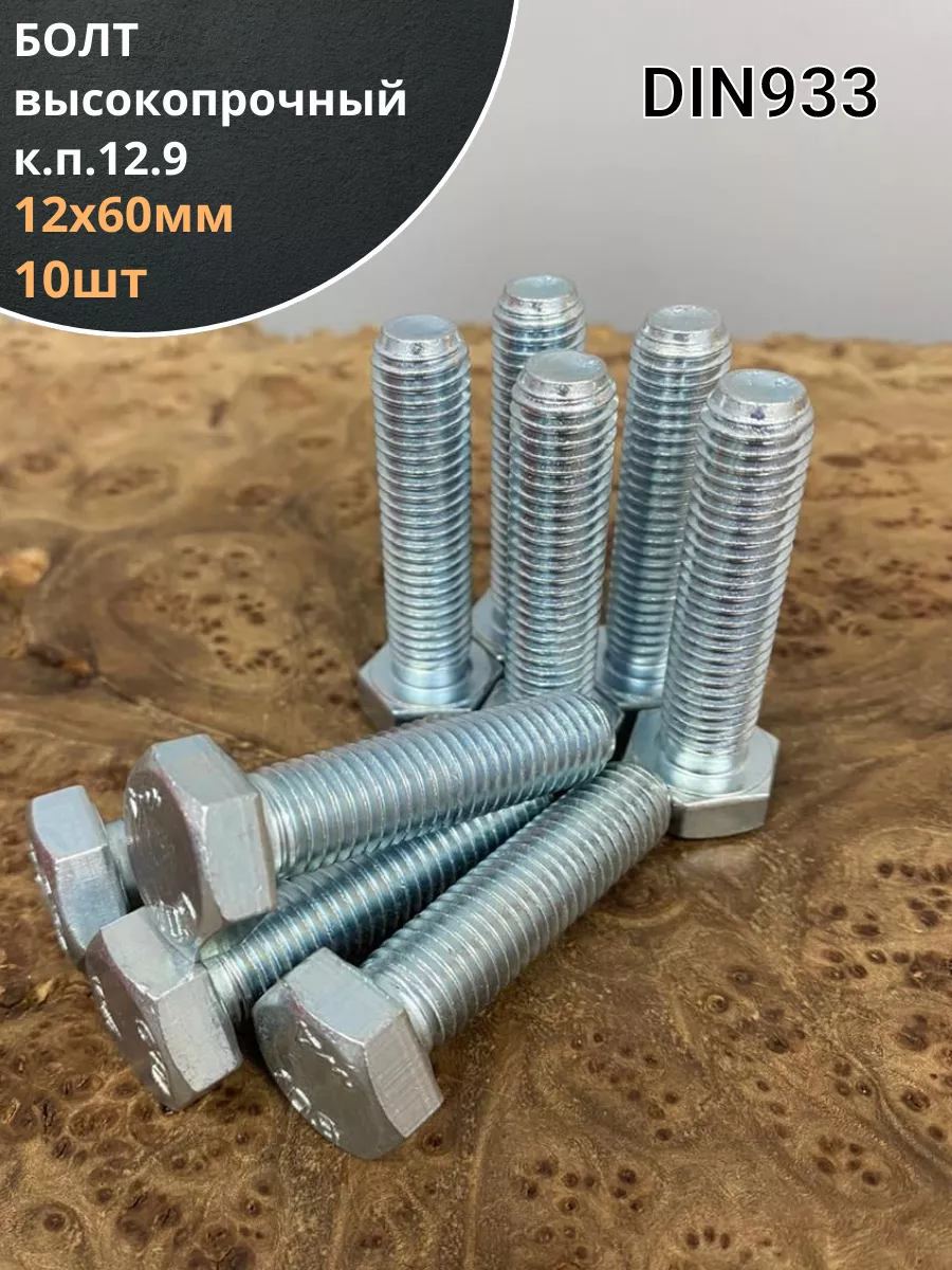 Болт высокопрочный 12х60 мм, DIN933 к.п.12.9 , ОЦ, 10шт.