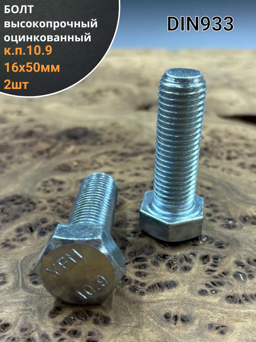 Болт высокопрочный ОЦ 16х50 мм , к.п.10.9 DIN933 ,2 шт.