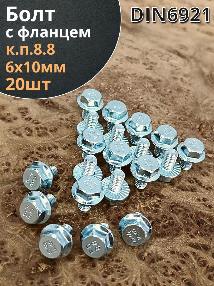 Болт М6х10 с фланцем к.п.8.8 ОЦ DIN6921, (20 шт.)