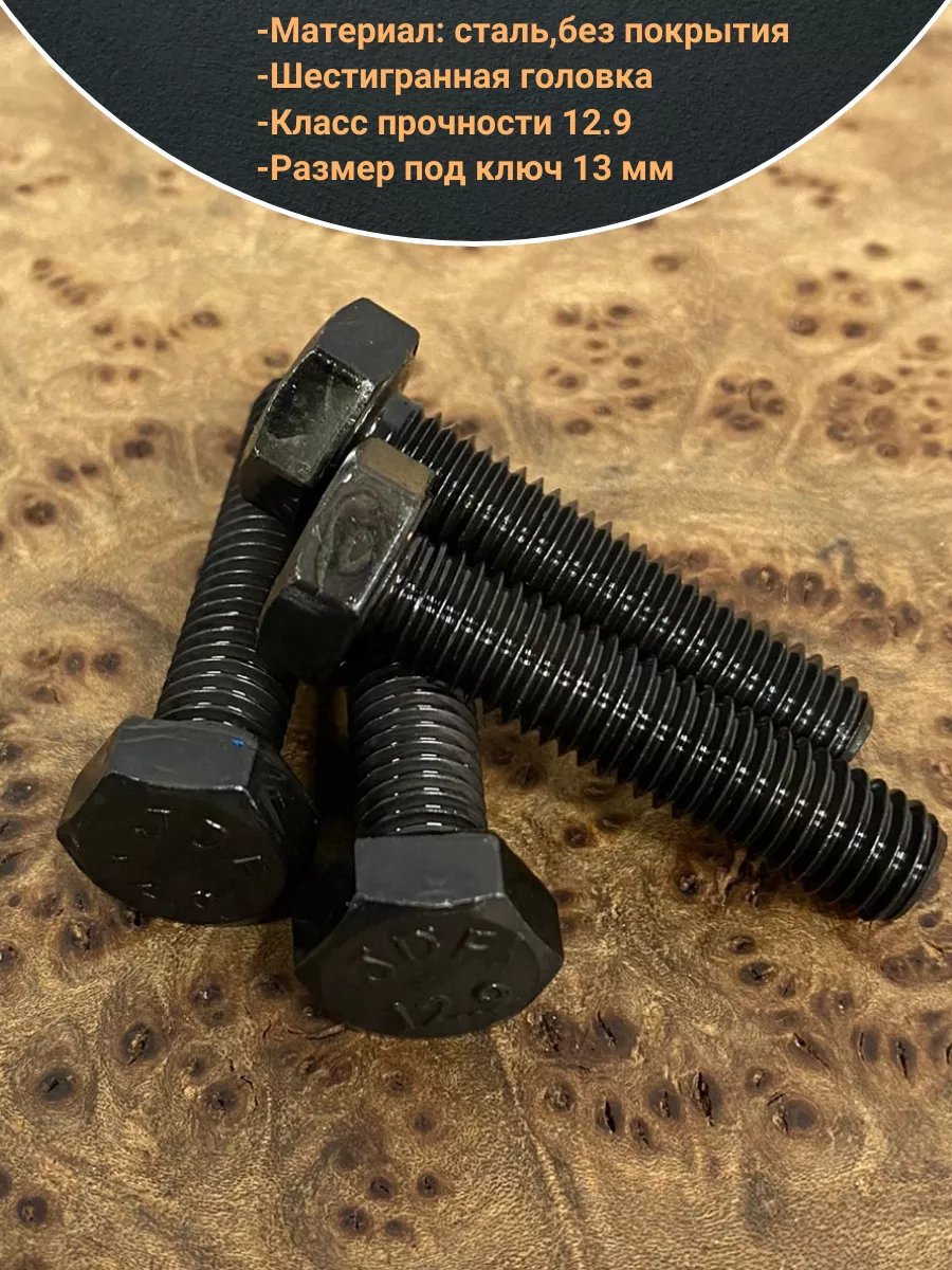 Болт высокопрочный 8х25 мм, DIN933, к.п.12.9 черный, 10шт.