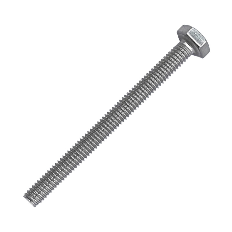 Материалом для болта служит нержавеющая сталь класса A2. У изделия есть цилиндрический стержень c полной резьбой М6 и шестигранная головка. Шляпка передает крутящий момент от ключа к крепежу при завинчивании. Для создания прочных резьбовых соединений крепеж используется в комбинации с шайбой и гайкой или завинчивается в отверстия с нарезанной резьбой. Чтобы исключить электрохимическую коррозию, шайбы с гайкой делаются из коррозионно-устойчивой стали либо нейтральных полимерных материалов.