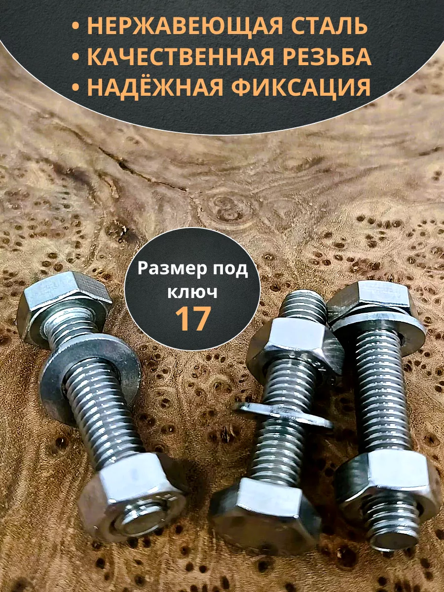 Болт нержавеющий 10х40 мм DIN933 с гайкой и шайбой, 10шт.
