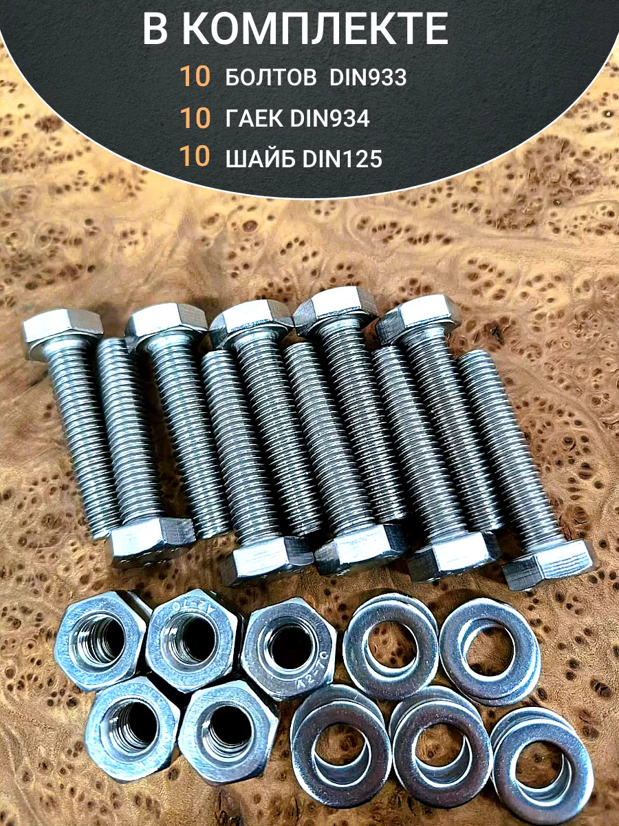 Болт нержавеющий 10х45 мм DIN933 с гайкой и шайбой, 10шт