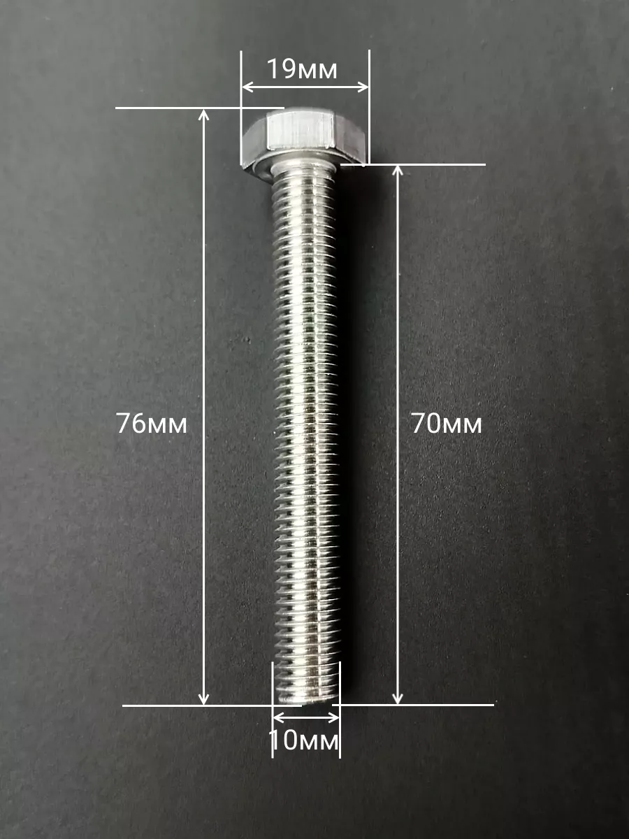 Болт нержавеющий 10х70 мм DIN933 с гайкой и шайбой, 10шт
