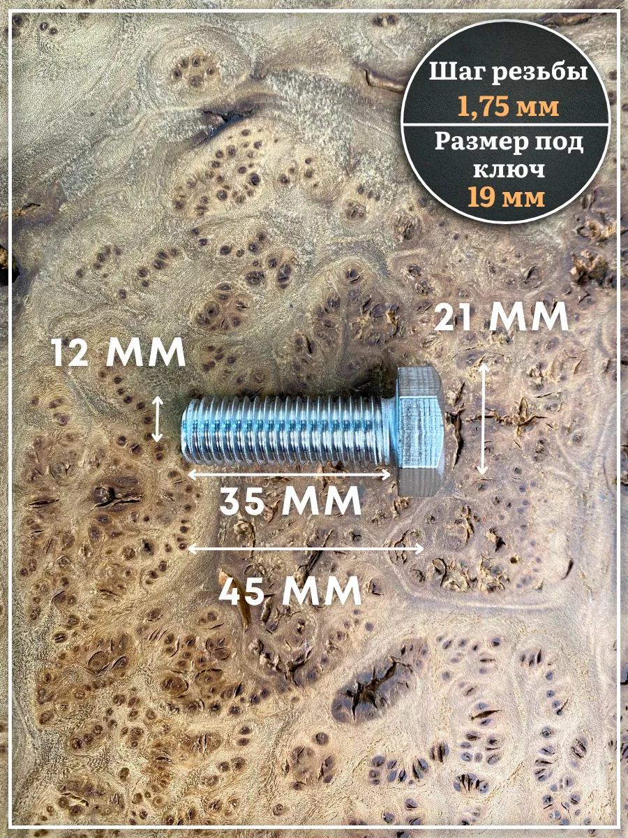 Болт нержавеющий 12х35 DIN933 с гайкой и шайбой, 10 шт.