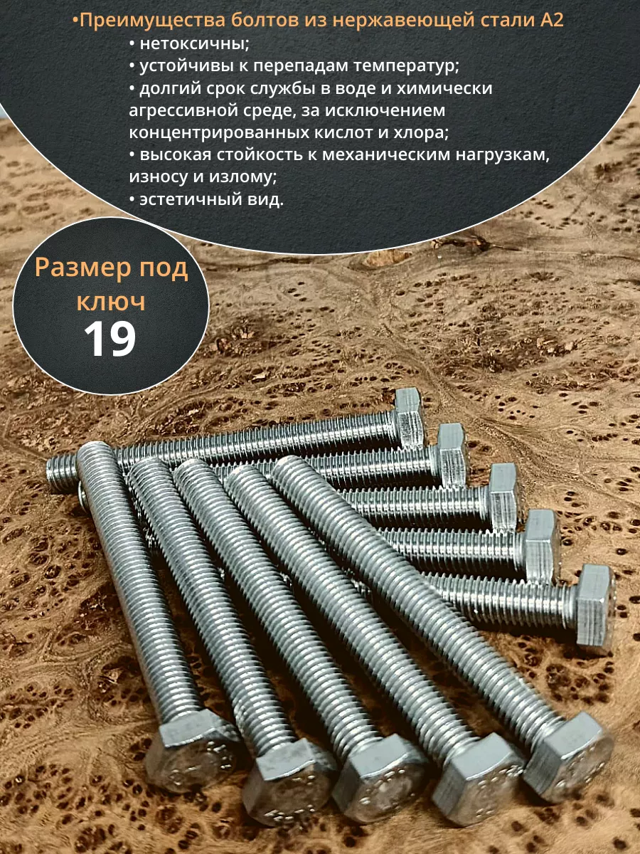 Болт нержавеющий 12х90 мм DIN933 10шт