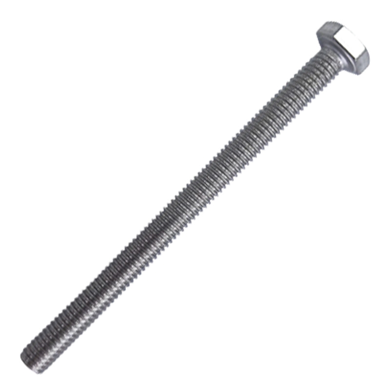 Материалом для болта служит нержавеющая сталь класса A4. У изделия есть цилиндрический стержень c полной резьбой и шестигранная головка. Шляпка передает крутящий момент от ключа к крепежу при завинчивании. Для создания прочных резьбовых соединений крепеж используется в комбинации с шайбой и гайкой или завинчивается в отверстия с нарезанной резьбой. Чтобы исключить электрохимическую коррозию, шайбы с гайкой делаются из коррозионно-устойчивой стали либо нейтральных полимерных материалов.