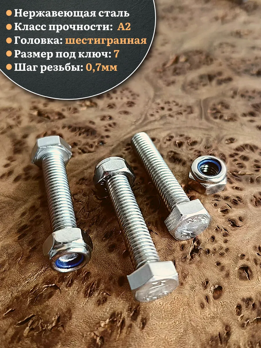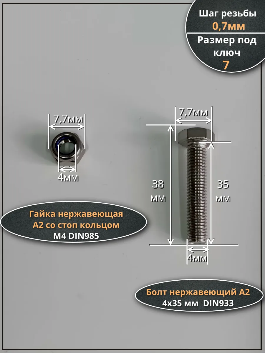 | Болт нержавеющий 4х35 мм DIN 933 со стоп гайкой , 50 шт. | 11544 | 1 шт. |
