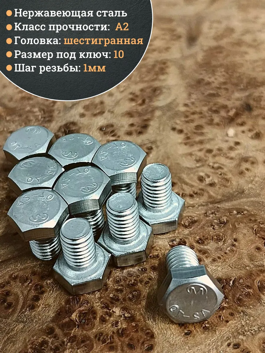 | Болт нержавеющий 6х12 мм DIN933 10шт | АС1300601293D07 | 1 шт. |
