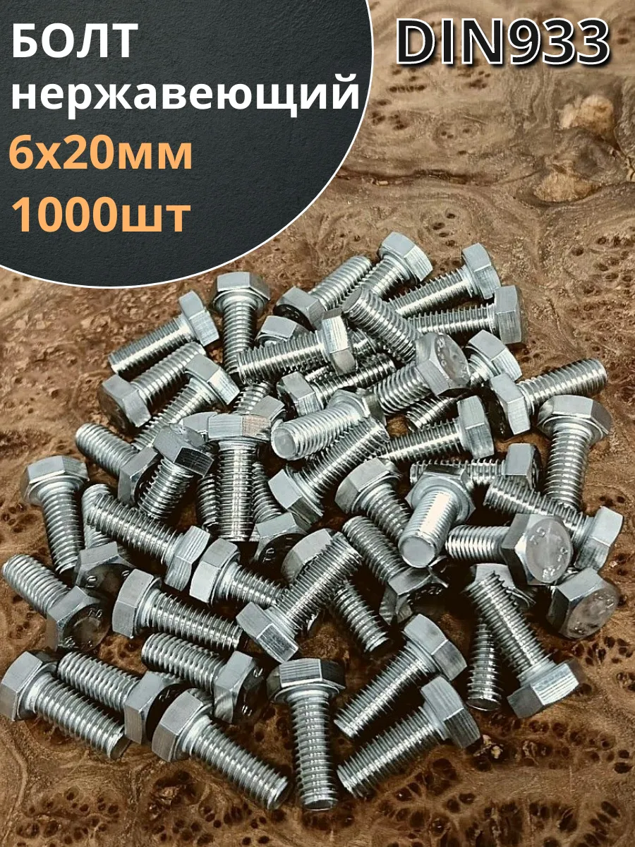| Болт нержавеющий 6х20 мм DIN933 100шт | АС1300602093D07ф100 | 1 шт. |