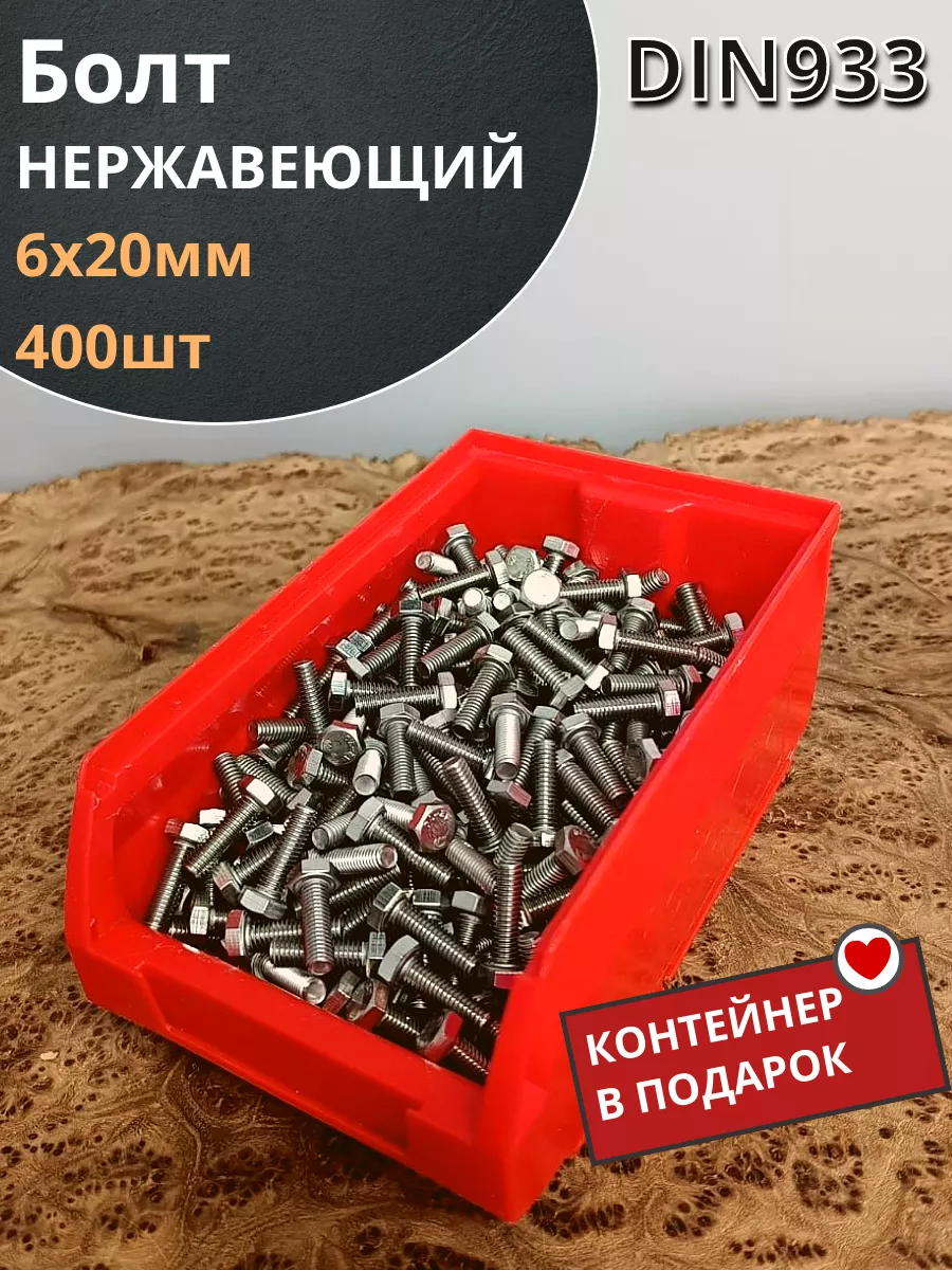 Болт нержавеющий 6х20 мм DIN933 (400шт) в контейнере