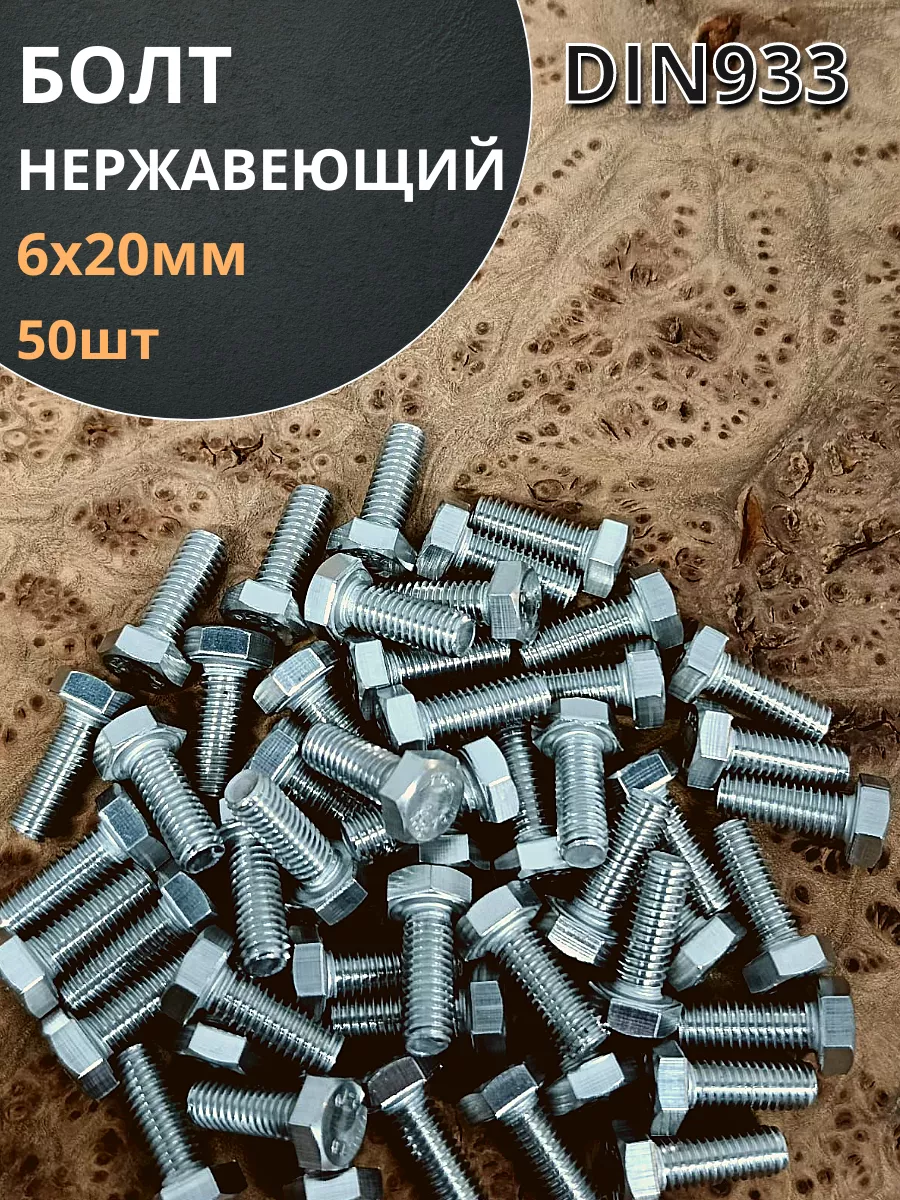 | Болт нержавеющий 6х20 мм DIN933 100шт | АС1300602093D07ф100 | 1 шт. |