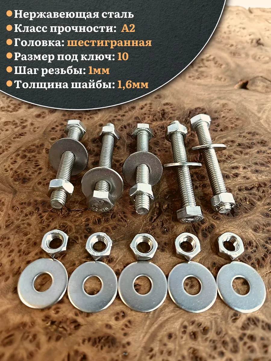 | Болт нержавеющий 6х35 мм DIN933 с гайкой и шайбой, 10шт. | 33334 | 1 шт. |