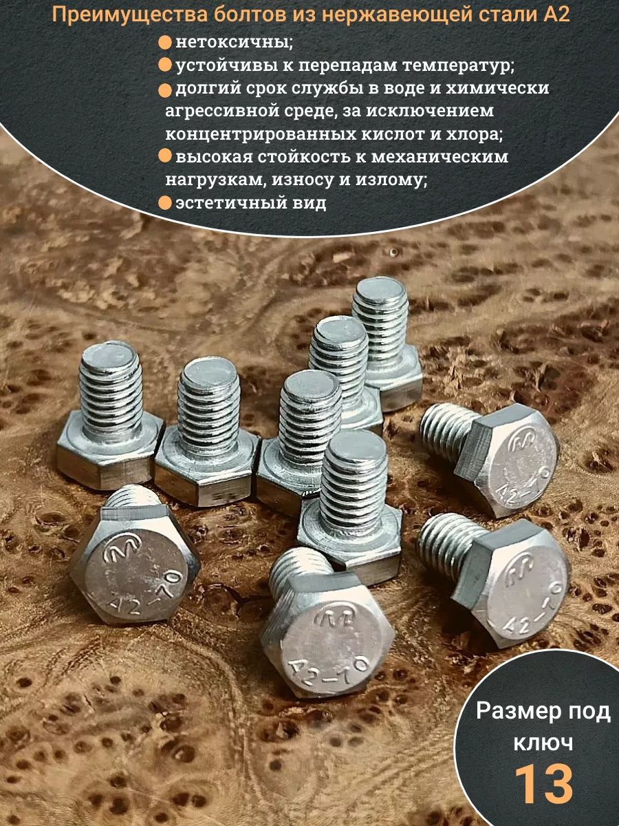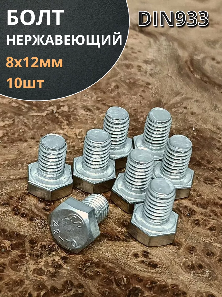 | Болт нержавеющий 8х12 мм DIN933 10шт | бн812 | 1 шт. |