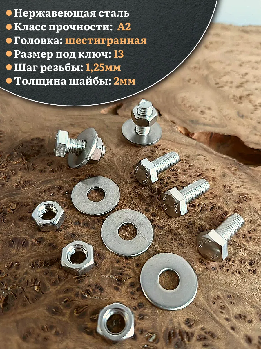 | Болт нержавеющий 8х20 мм DIN933 с гайкой и шайбой, 10шт. | 33341 | 1 шт. |