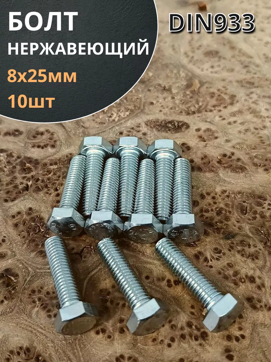 | Болт нержавеющий 8х25 мм DIN933 10шт | АС1300802592G07 | 1 шт. |