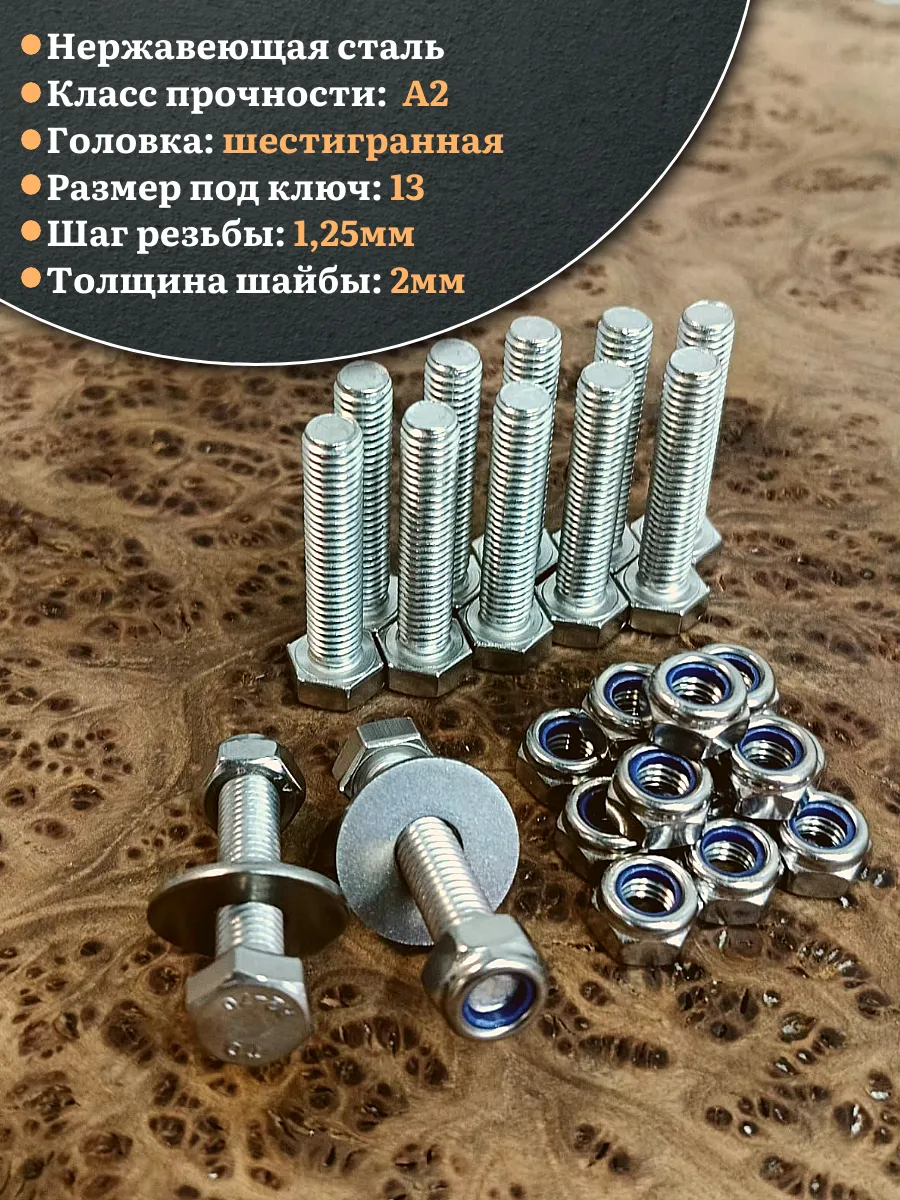| Болт нержавеющий 8х35 мм DIN933 с гайкой и шайбой, 10шт. | 33342 | 1 шт. |