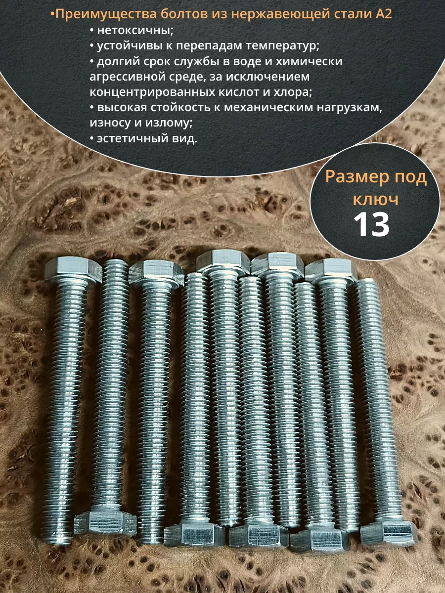 Болт нержавеющий 8х65 мм DIN933 10шт