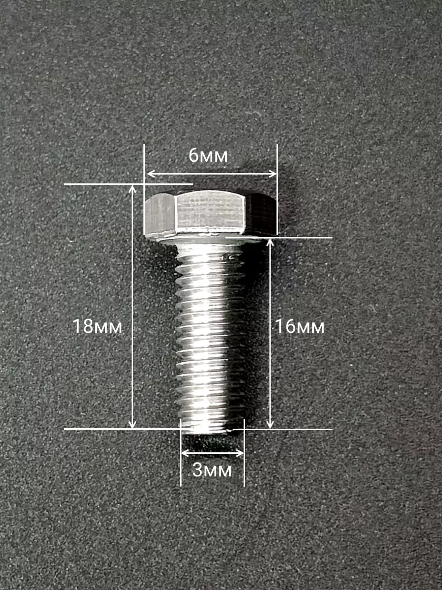 Болт нержавеющий М3х16 мм DIN 933 с гайкой , 10 шт.