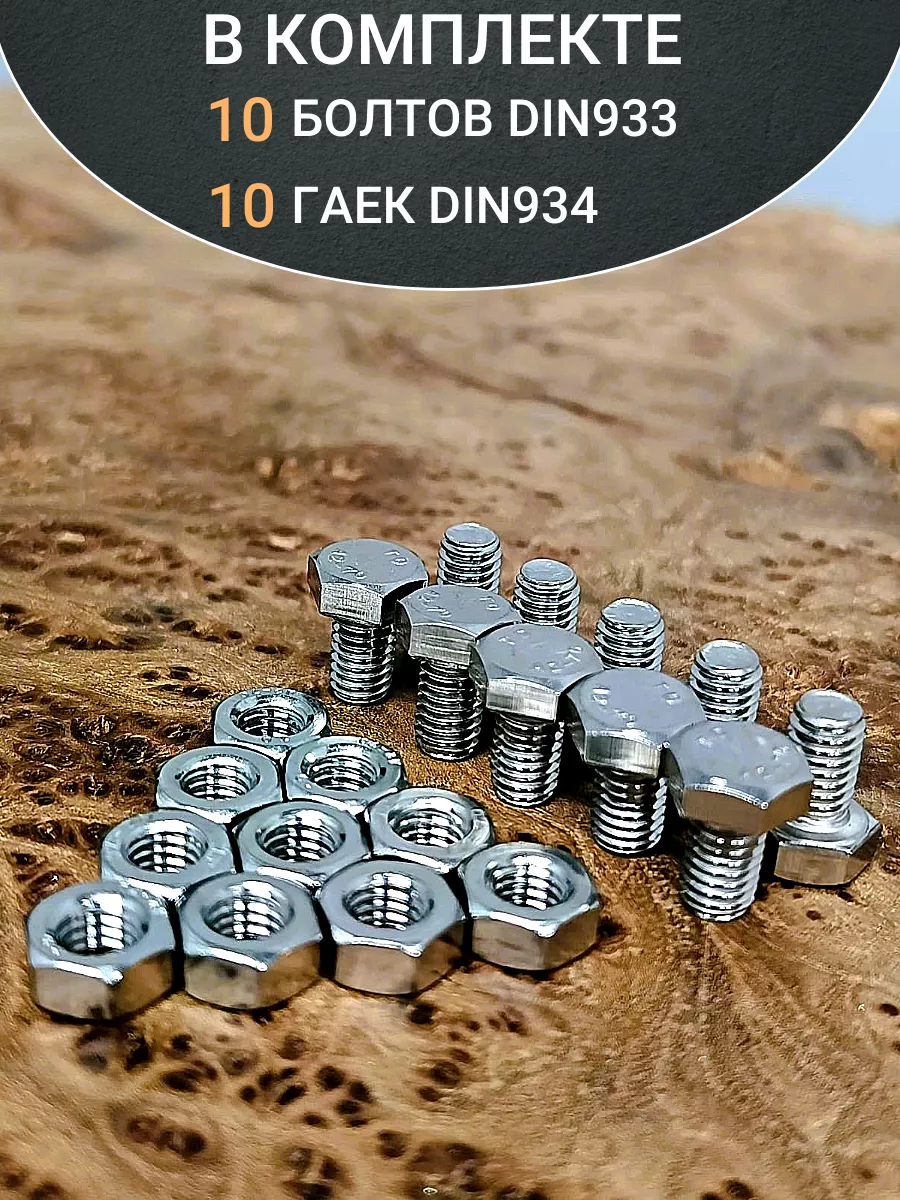 Болт нержавеющий М3х6 мм DIN 933 с гайкой , 10 шт.