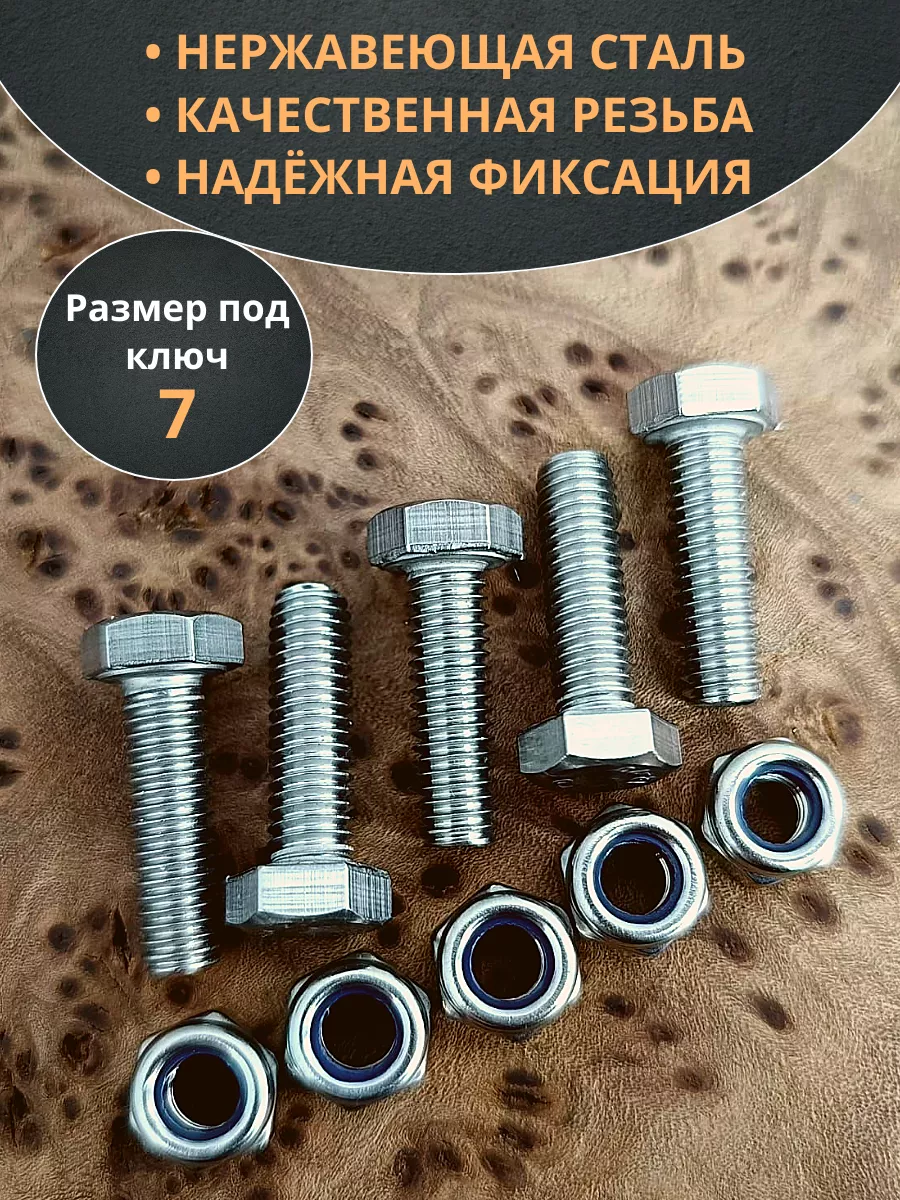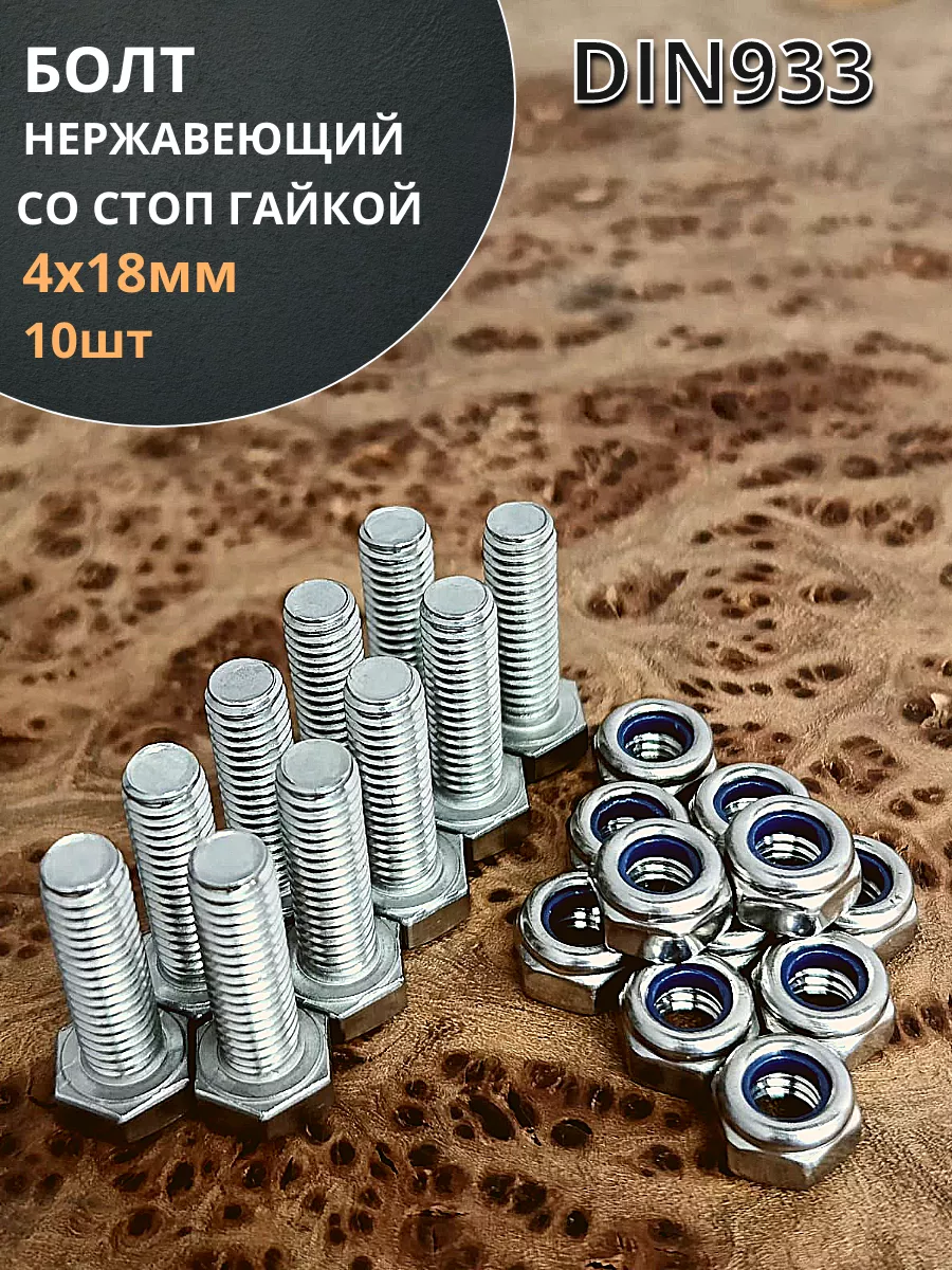 Болт нержавеющий М4х18 мм DIN 933 с гайкой , 10 шт.