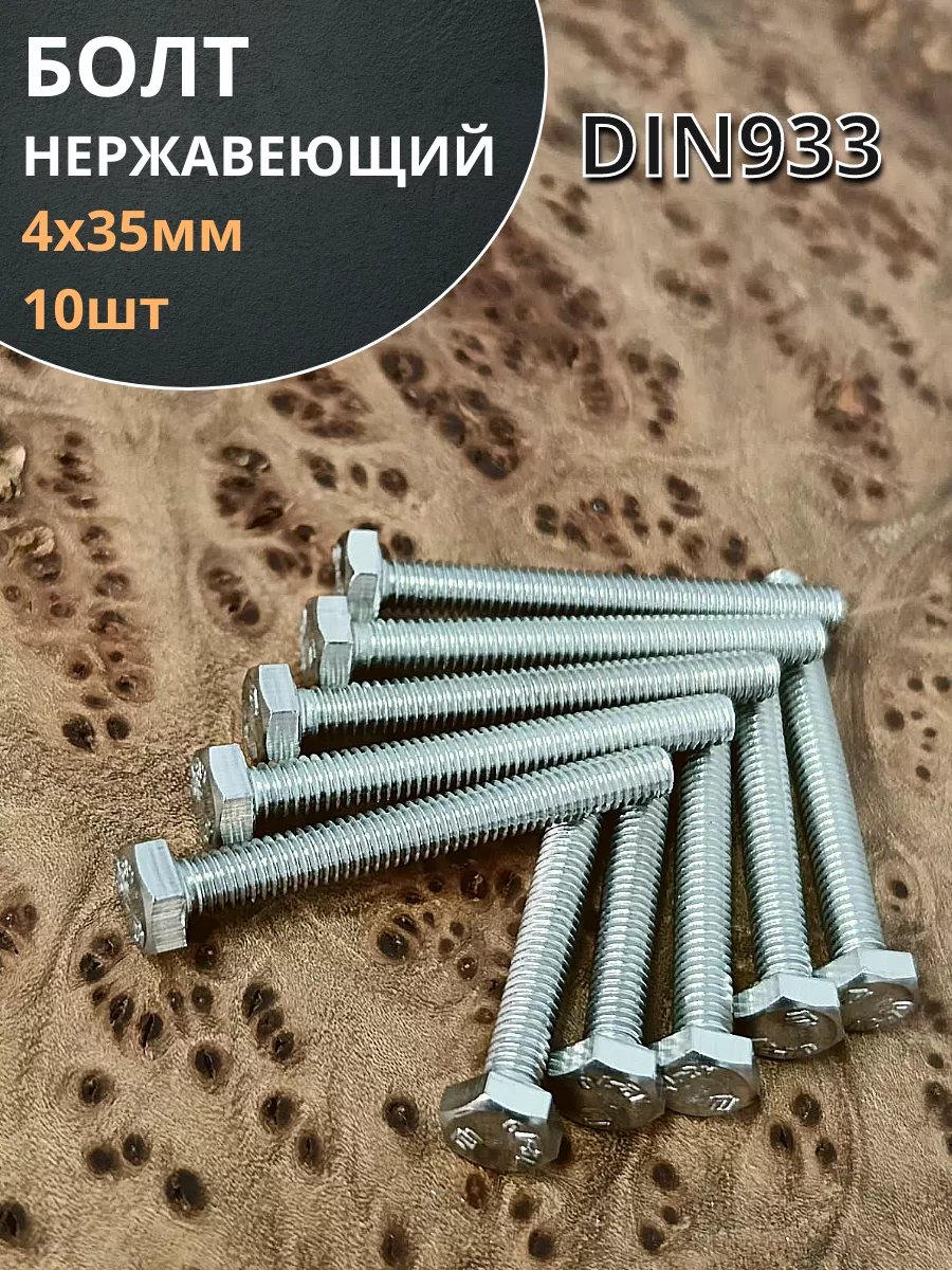 Болт нержавеющий М4х35 мм DIN 933, 10 шт.