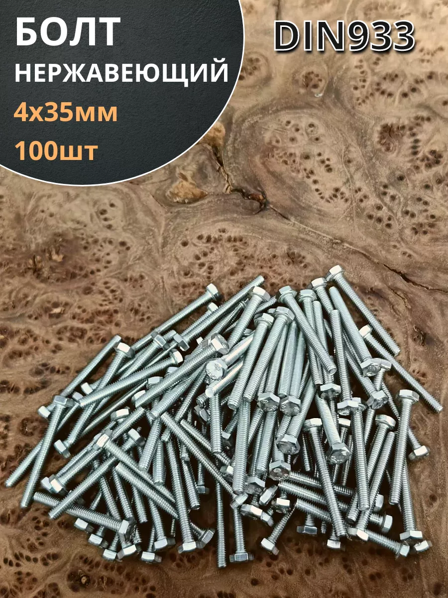 Болт нержавеющий М4х35 мм DIN 933 , 100 шт.