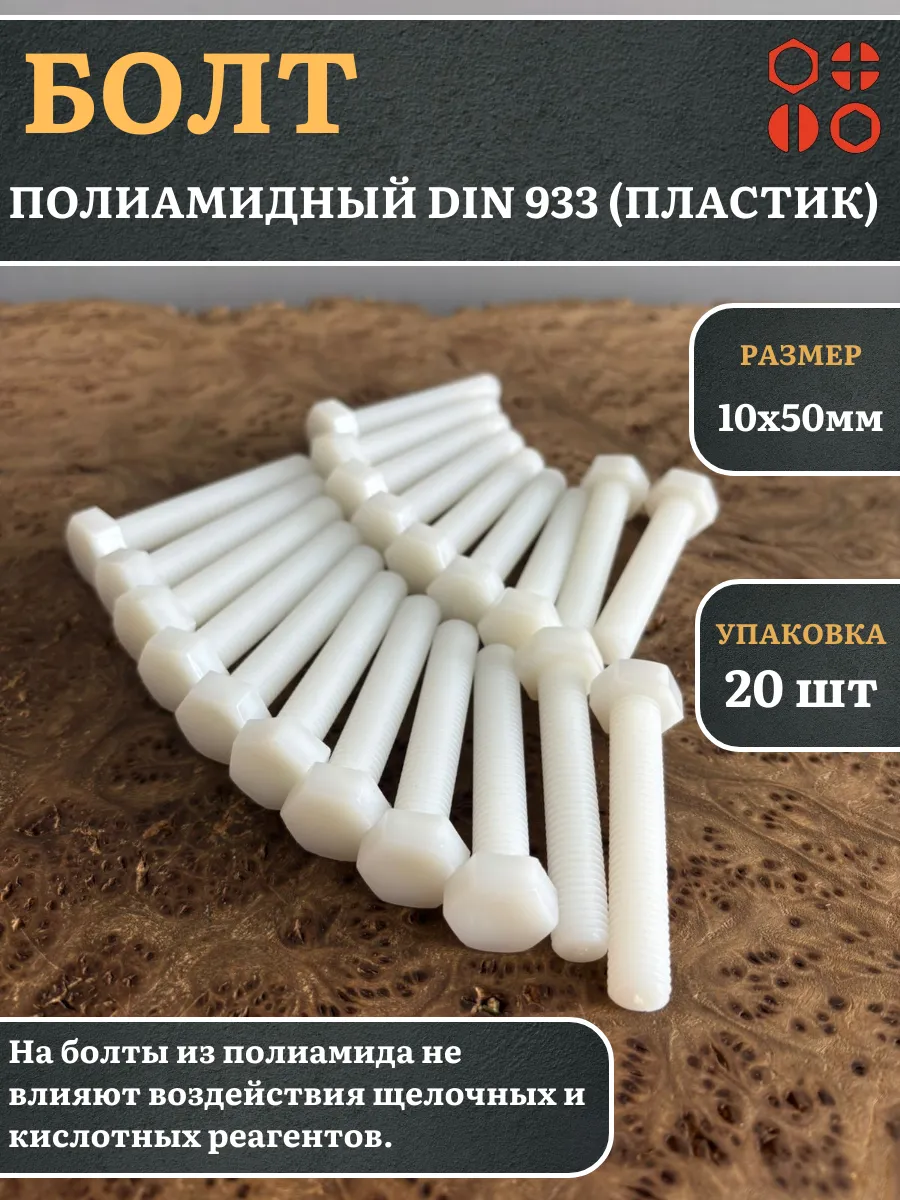 | Болт полиамидный 10х50 мм DIN 933 (пластик), 50 шт. | бп1050933ф50 | 1 шт. |