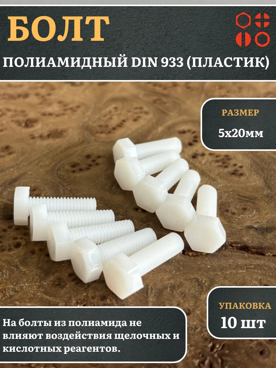 Болт полиамидный 5х20 мм DIN 933 (пластик), 10 шт.