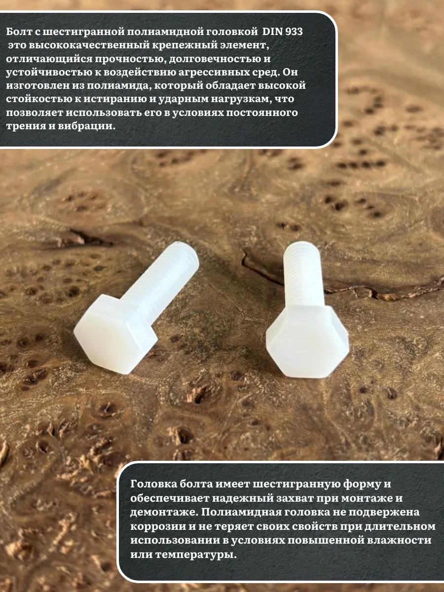 Болт полиамидный 5х20 мм DIN 933 (пластик), 20 шт.