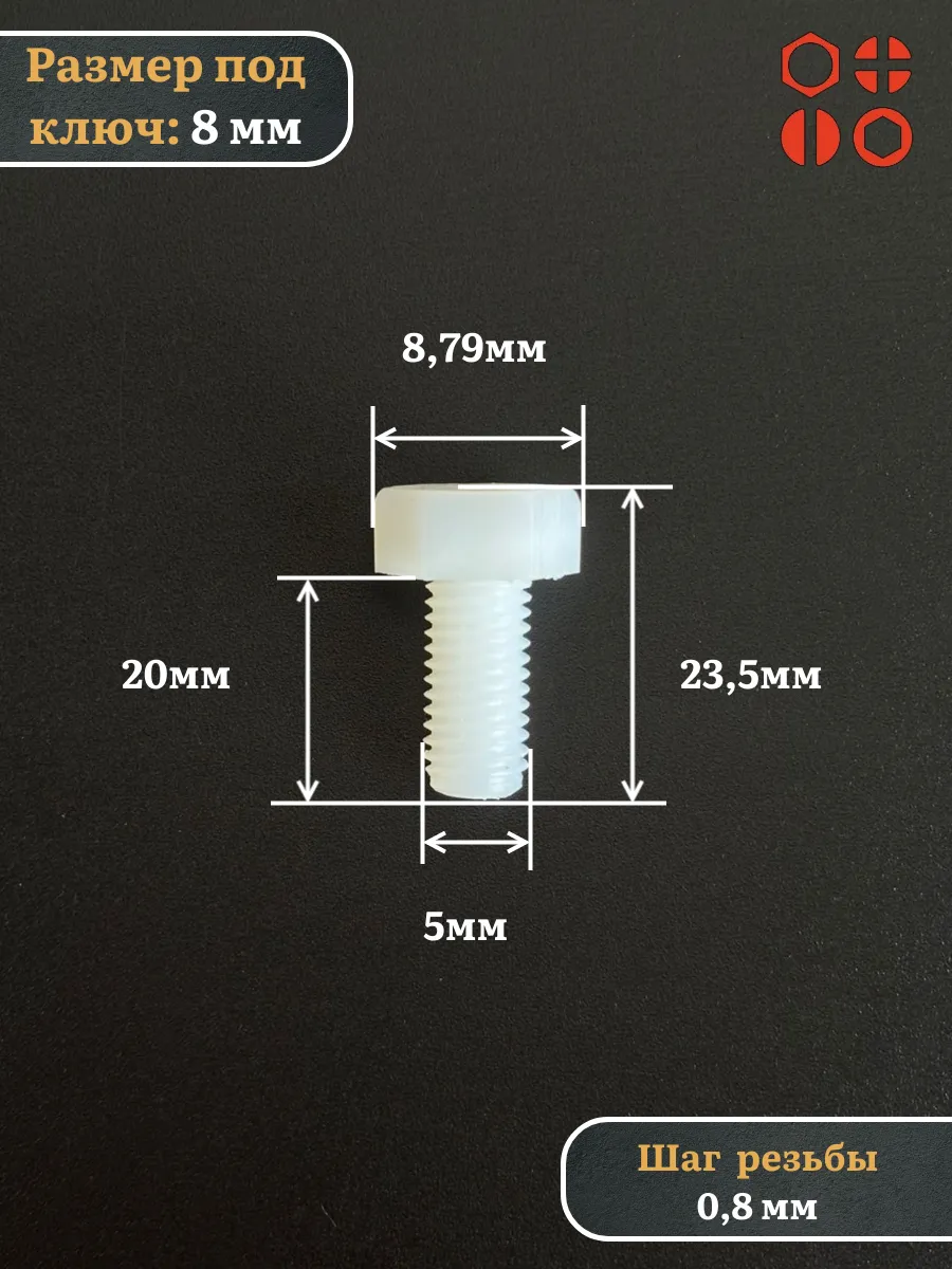 Болт полиамидный 5х20 мм DIN 933 (пластик), 50 шт.
