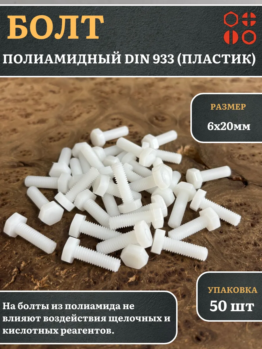 Болт полиамидный 6х20 мм DIN 933 (пластик), 50 шт.