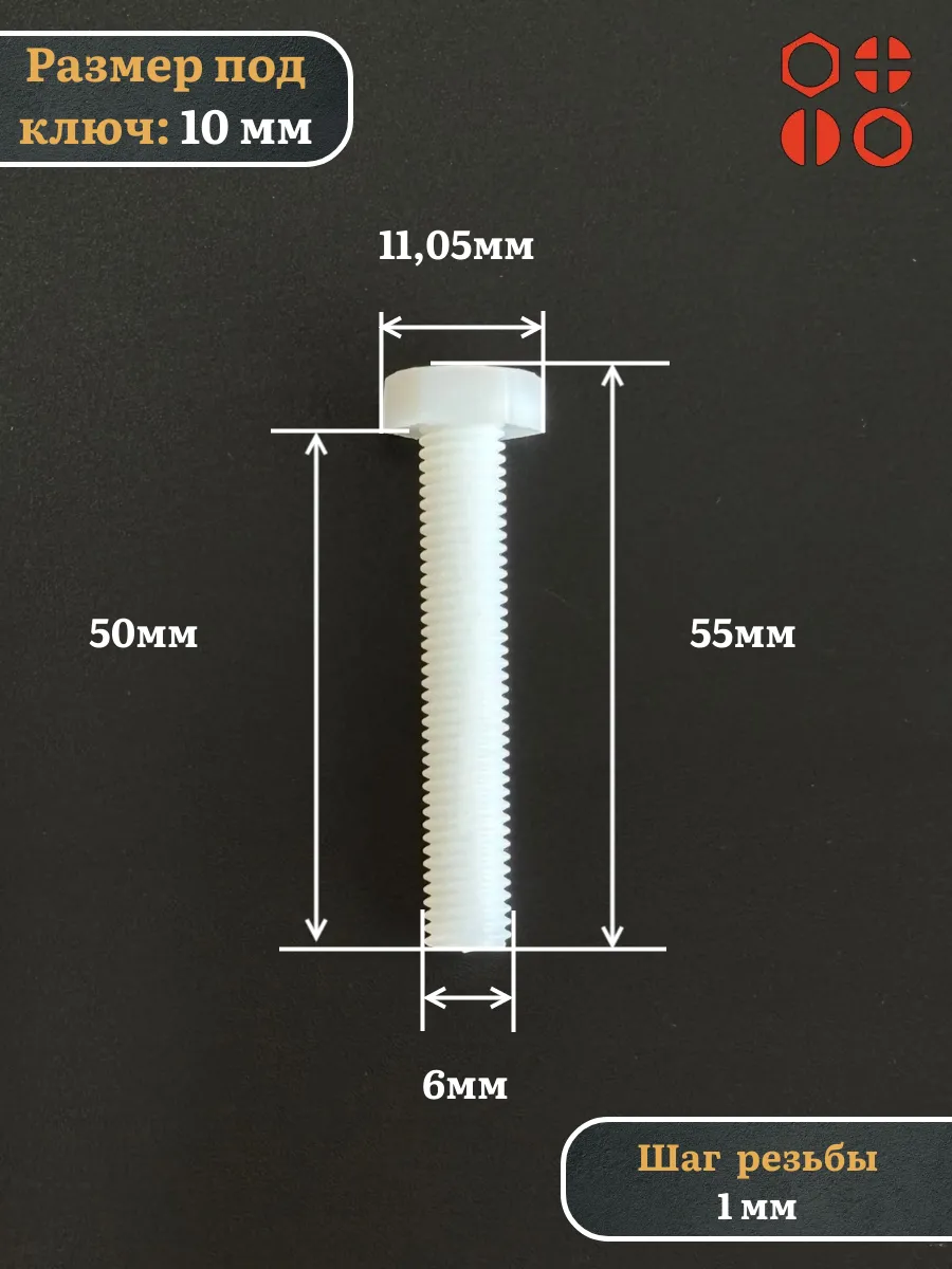 Болт полиамидный 6х50 мм DIN 933 (пластик), 10 шт.