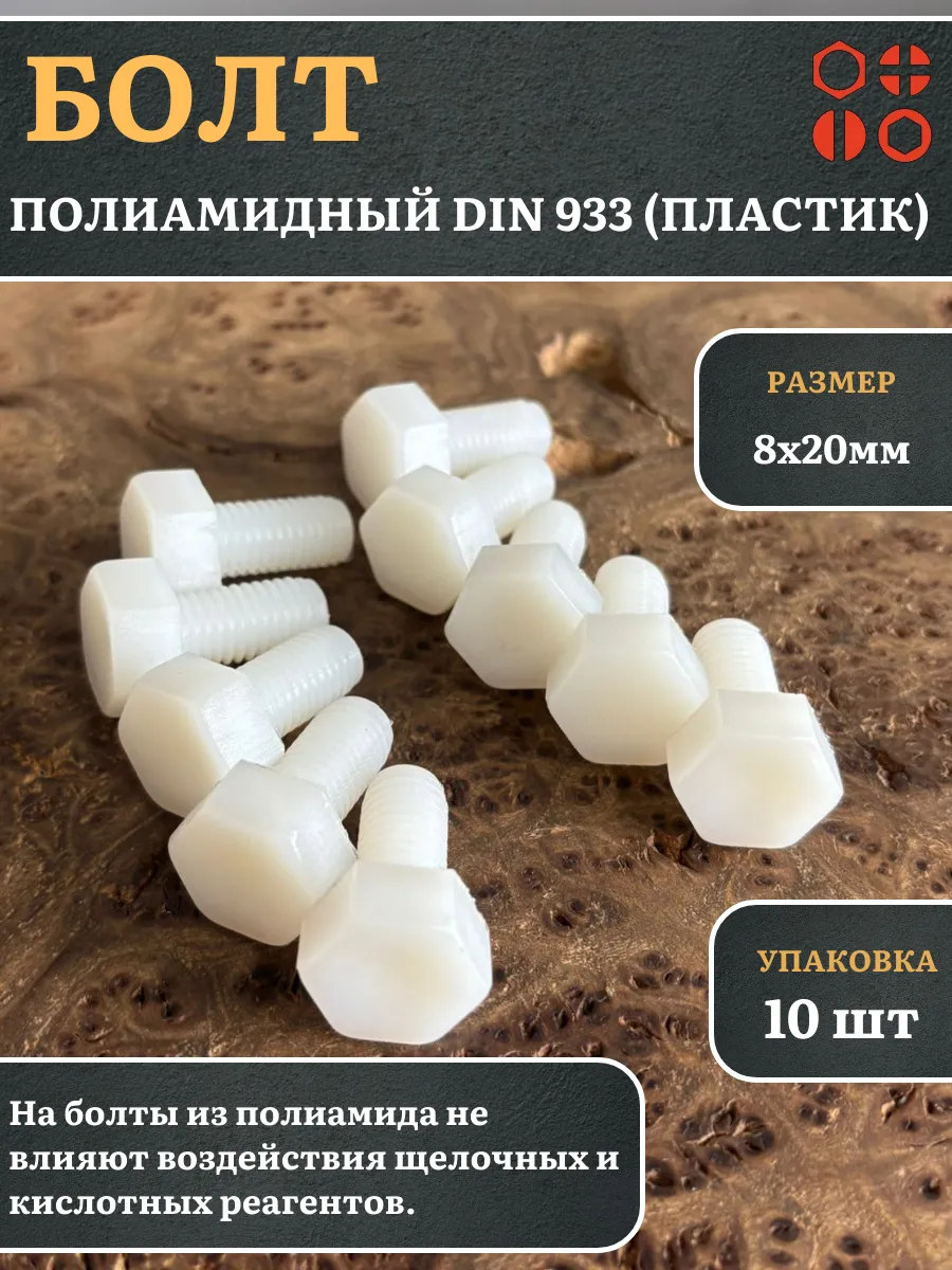 | Болт полиамидный 8х20 мм DIN 933 (пластик), 10 шт. | бп820933ф10 | 1 шт. |