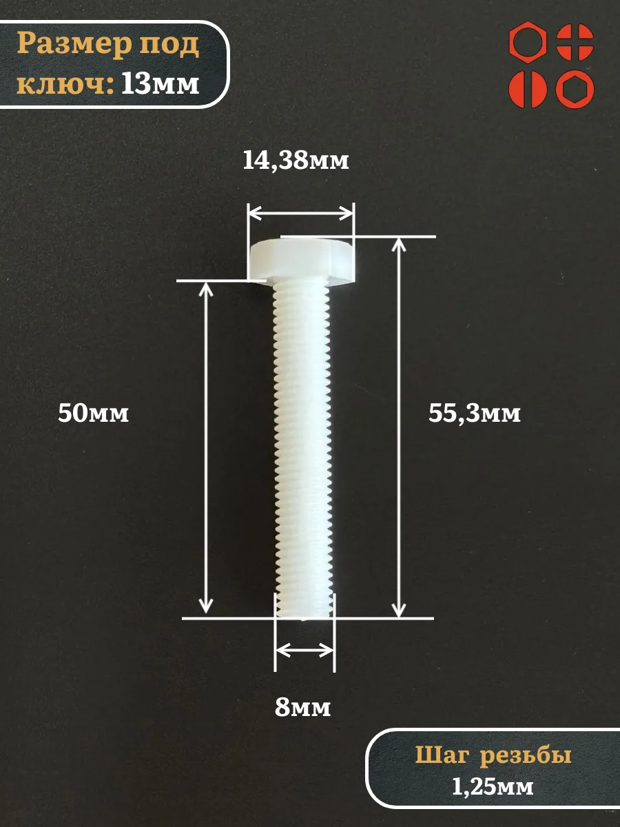 Болт полиамидный 8х50 мм DIN 933 (пластик), 50 шт.