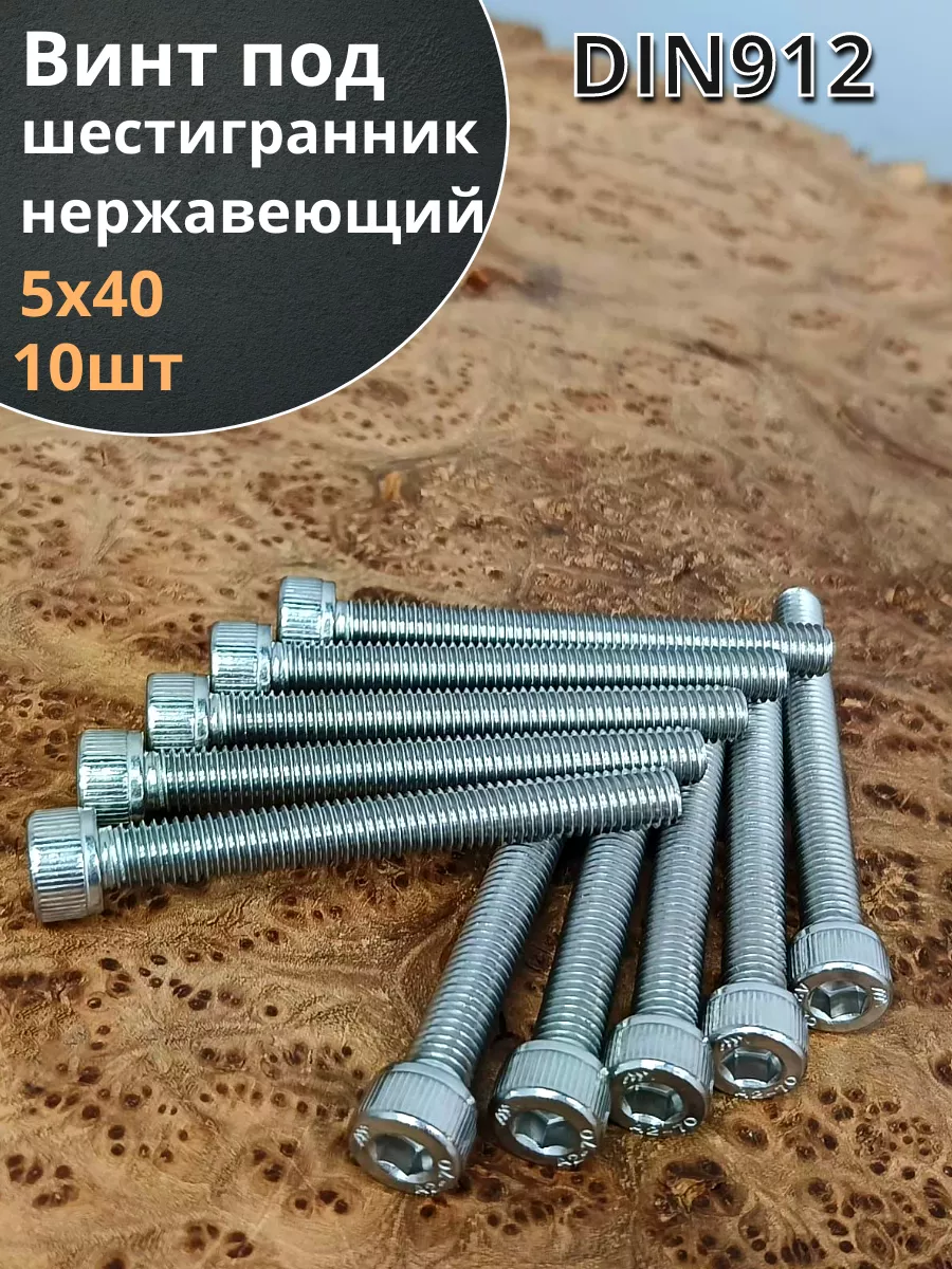 Винт нержавеющий шестигранник М5х40, DIN 912,10 шт