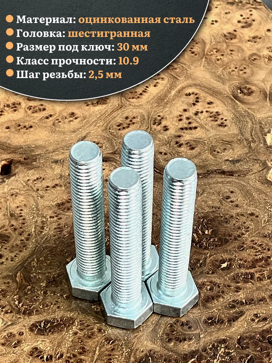 Болт высокопрочный ОЦ 20х90 мм, к.п.10.9 DIN933, 4 шт.