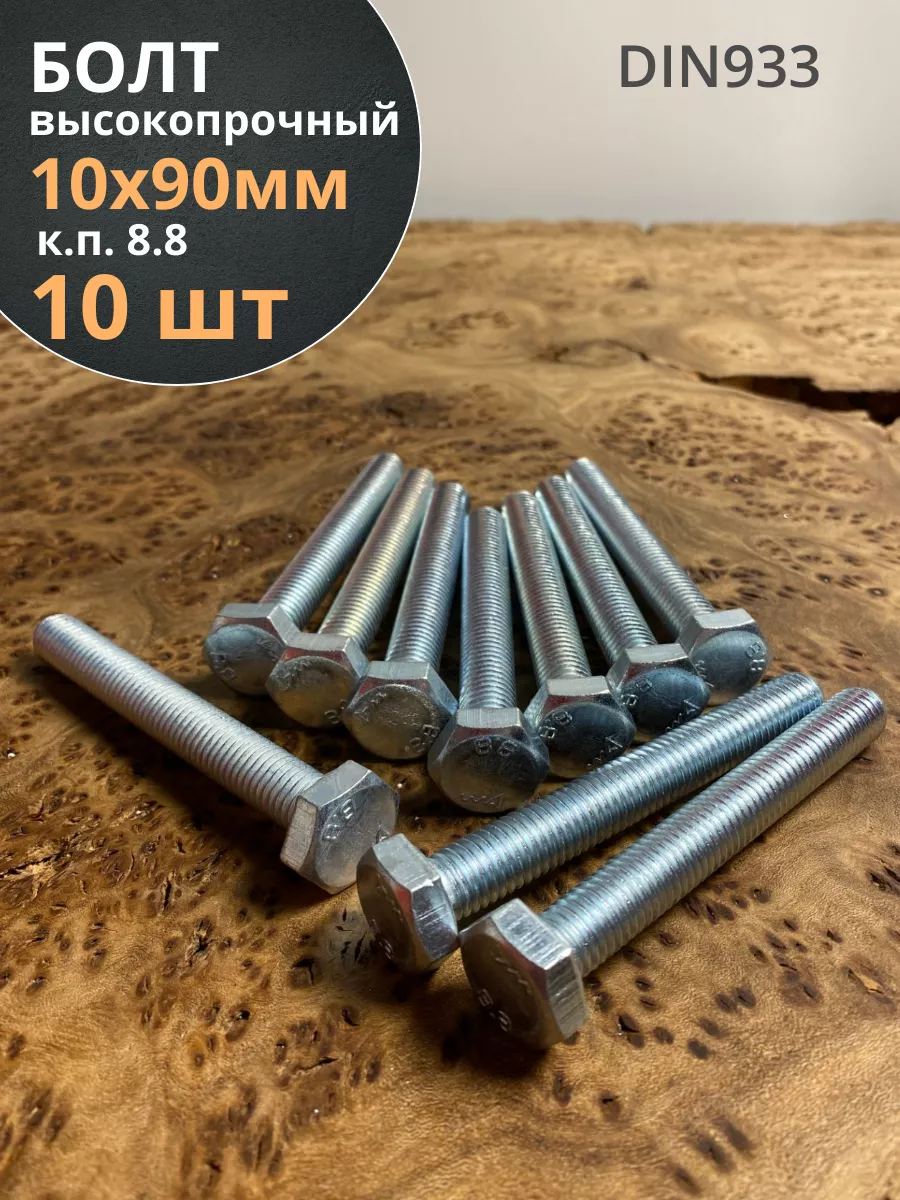 Болт высокопрочный оцинкованный М10х90 к.п.8.8 DIN933(10 шт)