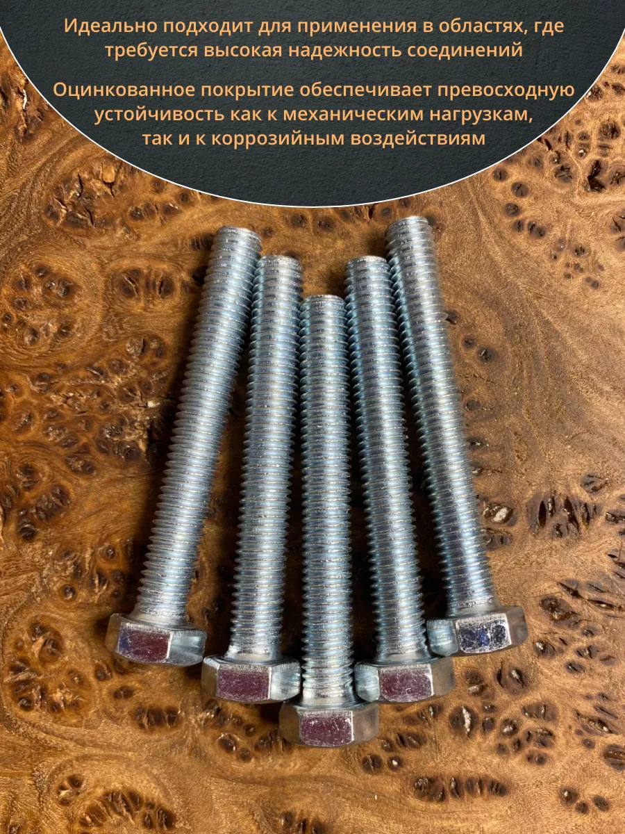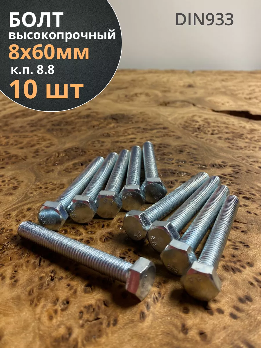 Болт высокопрочный оцинкованный М8х60 к.п.8.8 DIN933 (10 шт)