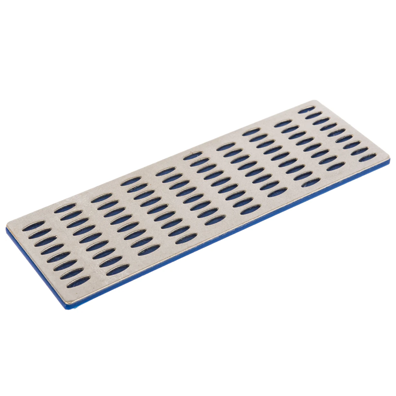 Брусок абразивный алмазный 150х50 мм Р800, синий с зернистостью Р 800 предназначен для заточки лезвий ножей и ножниц. Удобная форма позволяет эффективно работать с различными инструментами. Очень мелкая зернистость позволяет добиться высокой гладкости и остроты режущей кромки, подходит для финишной обработки.