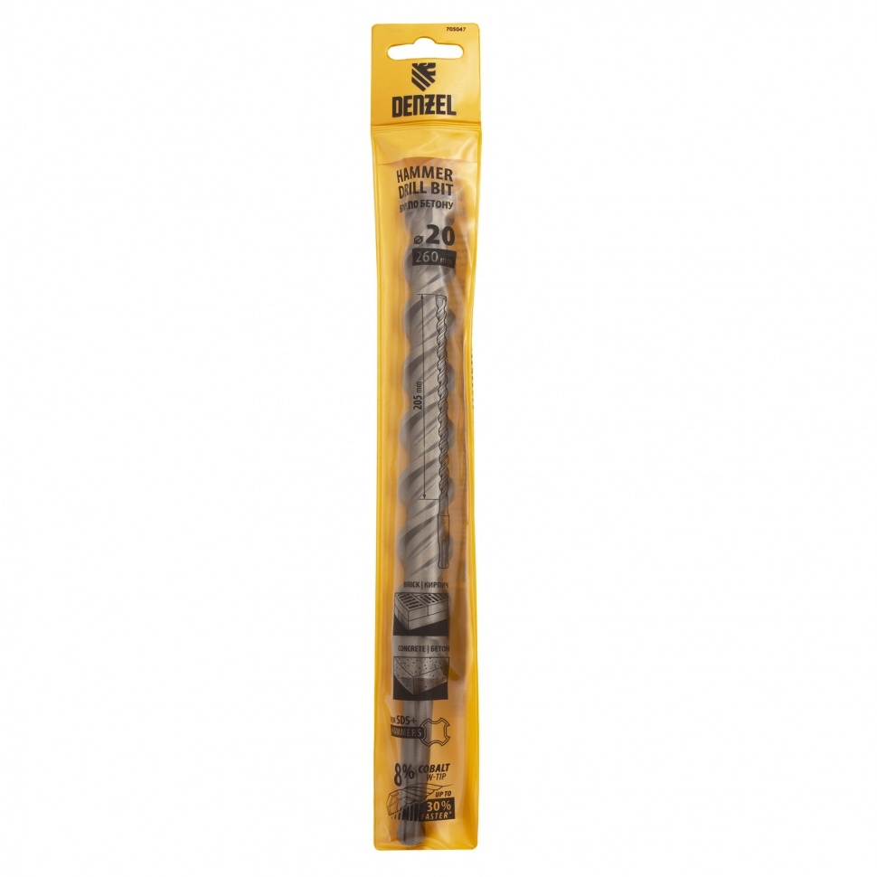 Бур по бетону Cobalt W-tip, двойная спираль, SDS-Plus, 20х260 мм Denzel