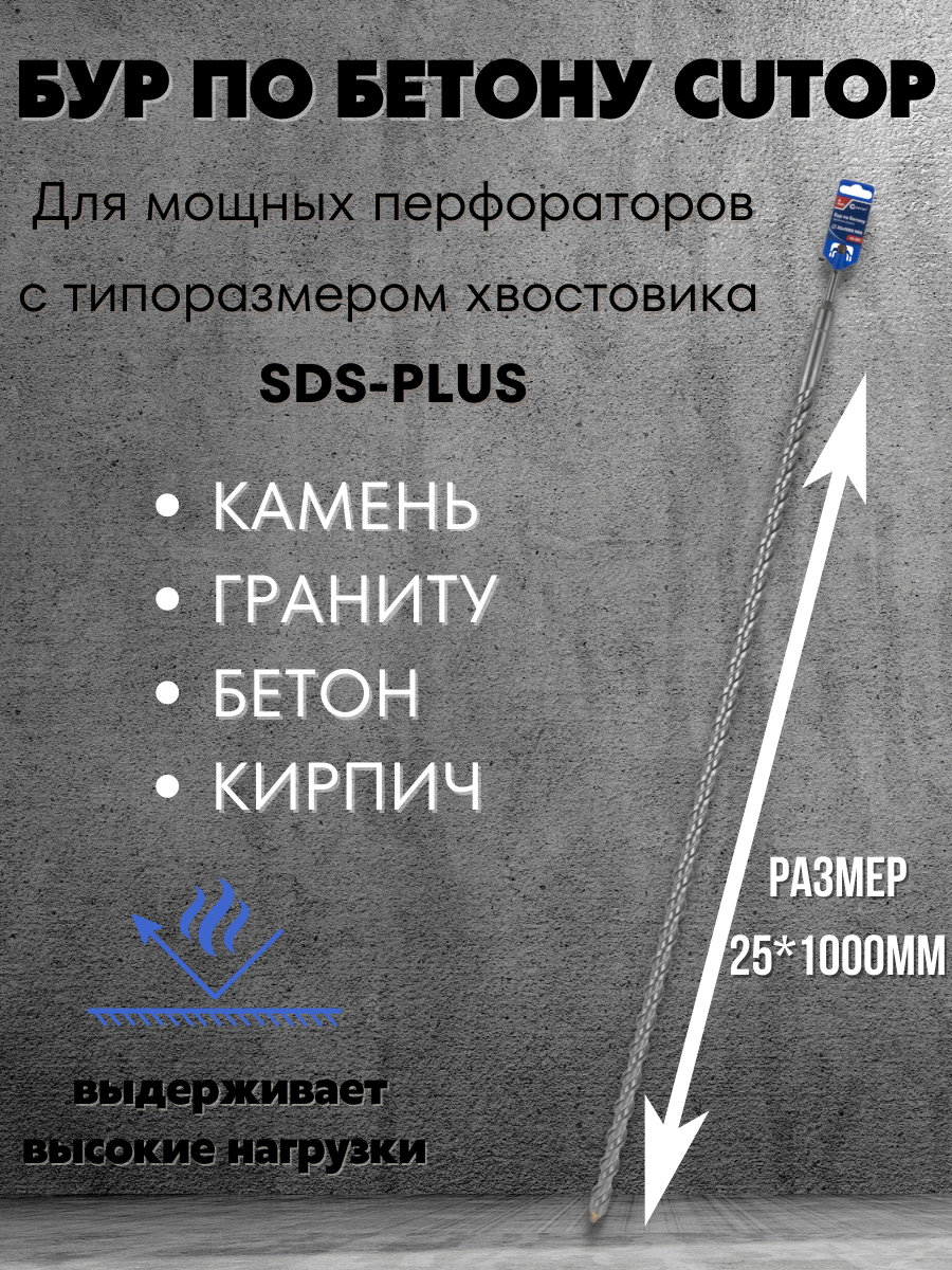 Бур по бетону CUTOP, Profi, двойная резьба, SDS-Plus, 25х1000 мм