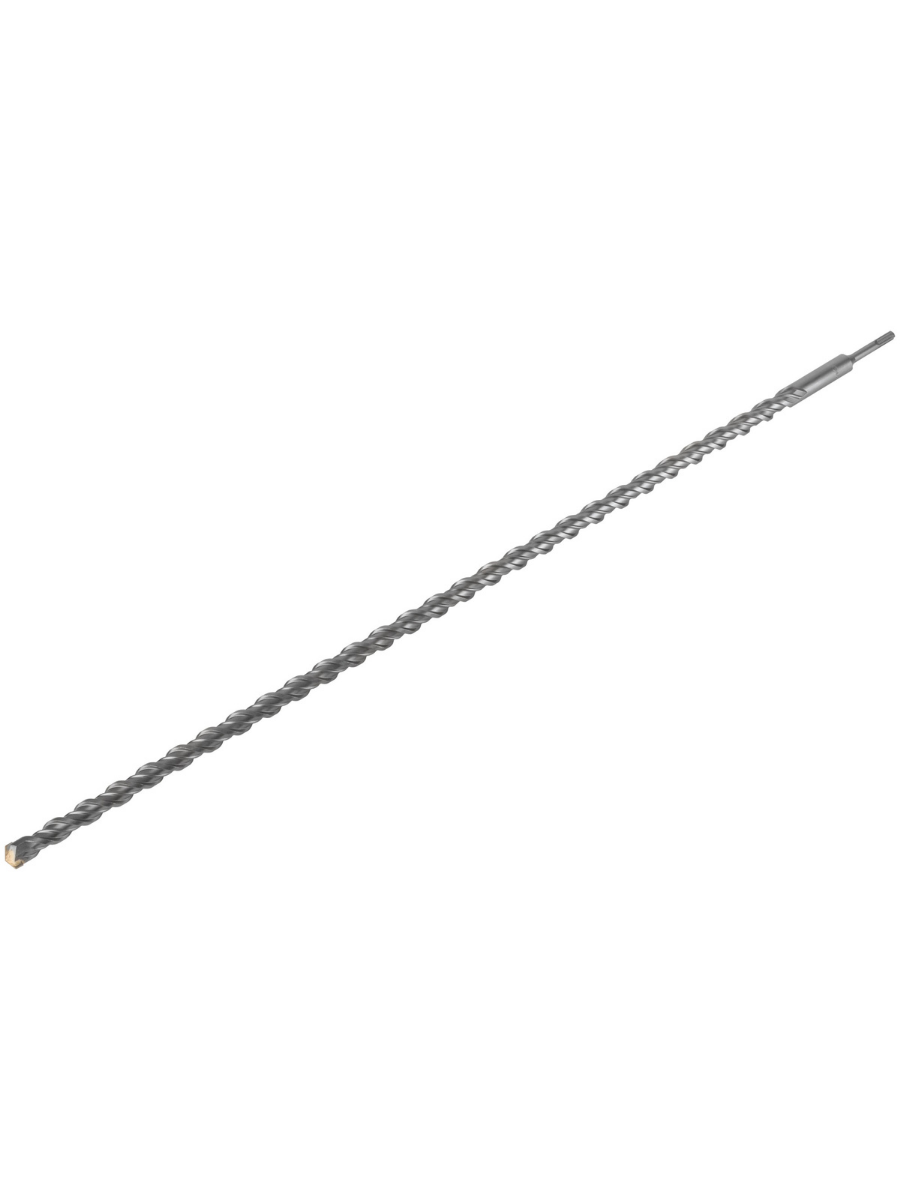 SDS-PLUS хвостовик. Карбидный наконечник повышенной плотности с добавлением кобальта 8% гарантирует длительную работу бура без изменения диаметра. Двойная спираль сохраняет постоянную скорость бурения. Легированная инструментальная сталь с добавлением хрома увеличивает износостойкость бура к истиранию.